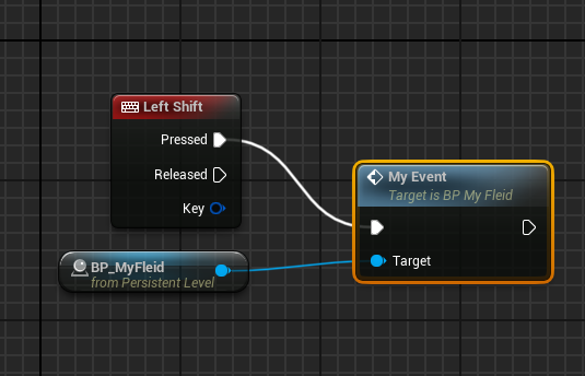 커스텀 이벤트 실행핀에 keyboard 입력을 연결해주면 완성.