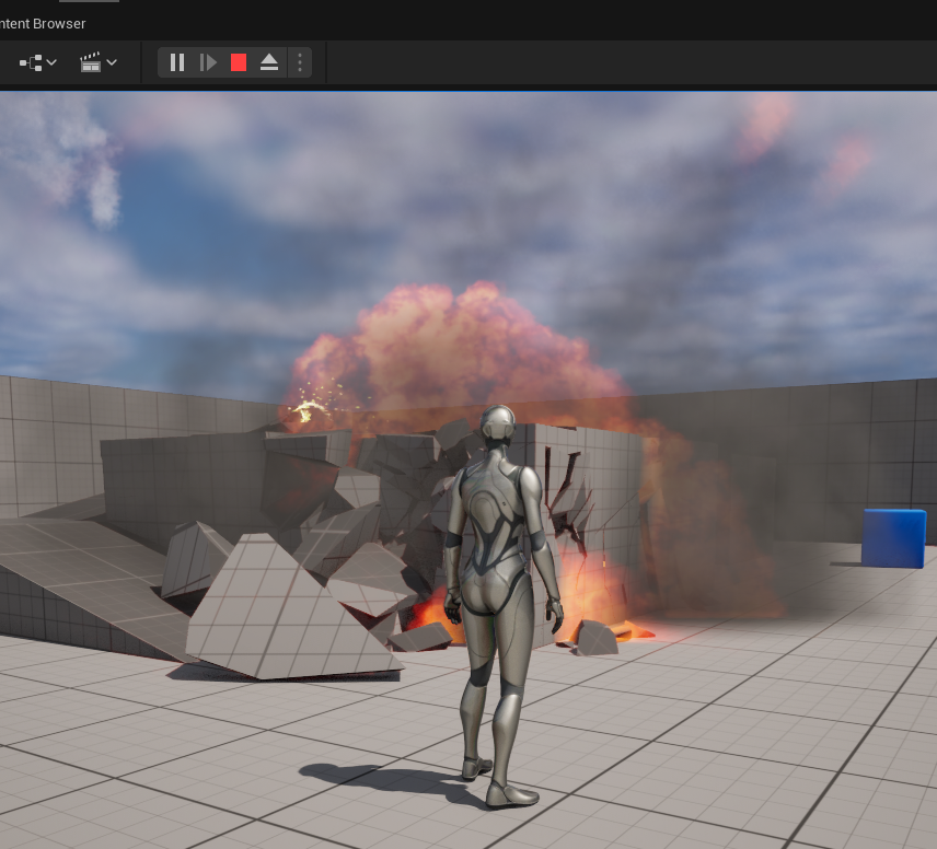 작업한 블루프린트를 앞서 만들어놓은 프렉처 적용된 오브젝트 근처 레벨에 배치하고,