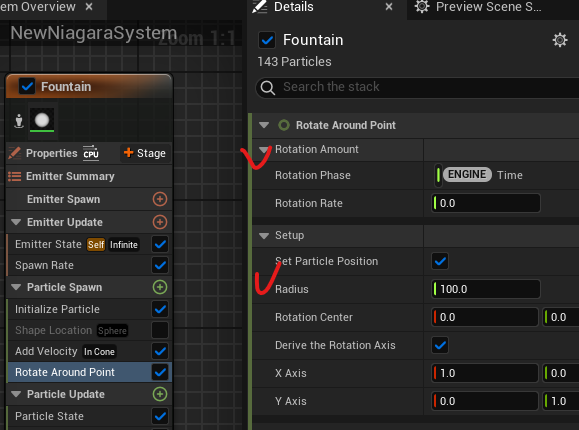 Radius로 회전하는 원의 지름을 바꿔줄 수 있다.