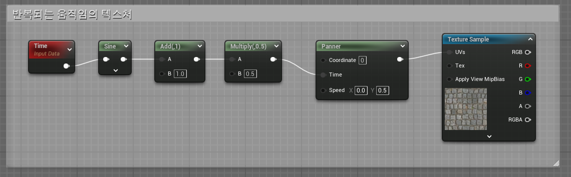 무엇인가 진행시키면서 텍스처를 변경하려면 Time 노드를 사용하게 된다